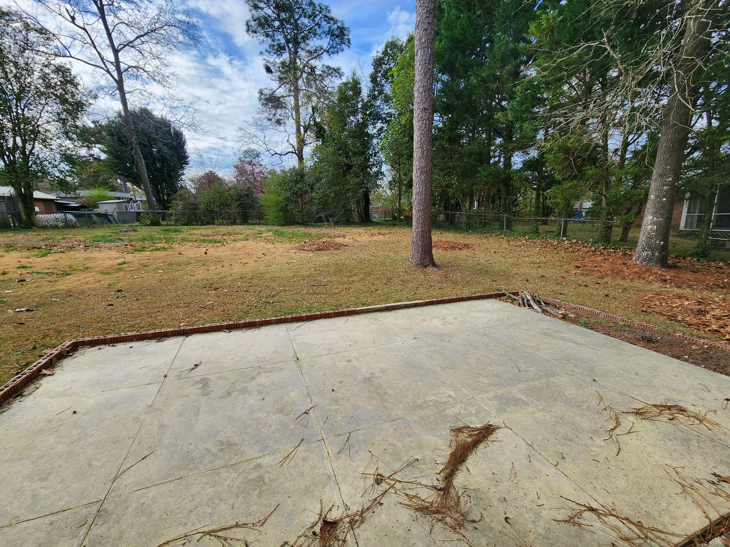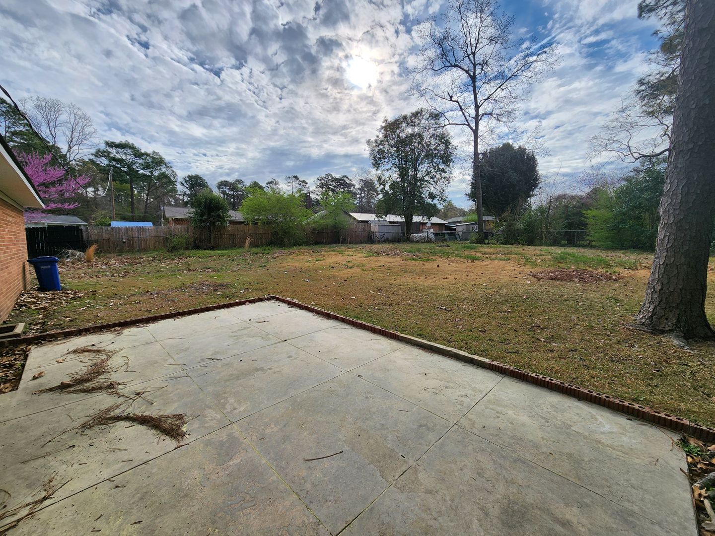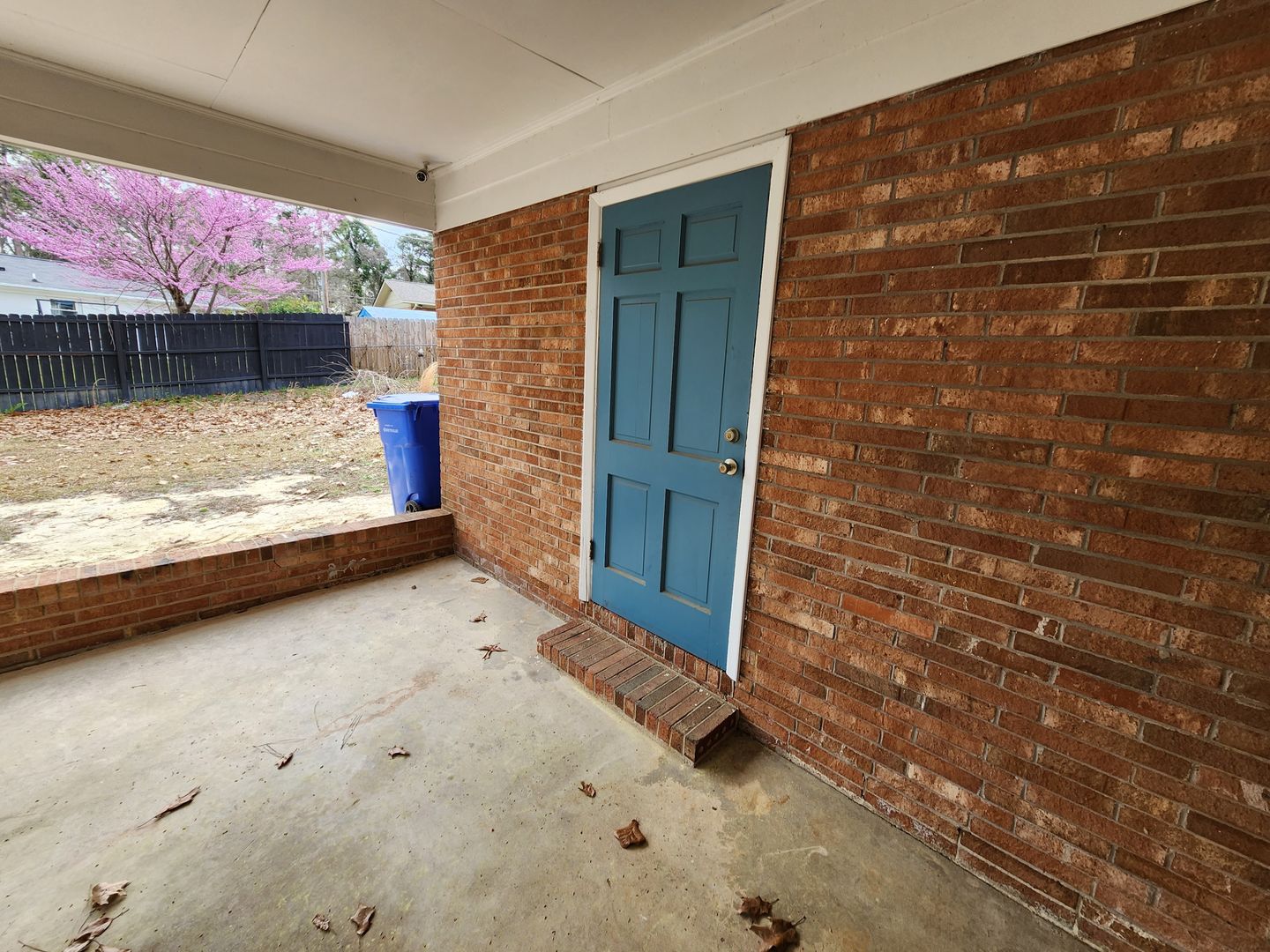 The backyard is fully fenced and offers a large concrete patio and a lot of grassy area. In the front, the home has a one-car carport with a storage closet attached.